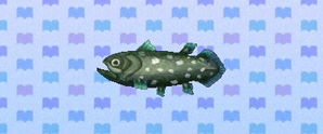 The Coelacanth (see-luh-kanth), Latimeria chalumnae, is a very rare oceanic fish that can be caught between the hours of 4pm and 9am, year-round. It is considered the ultimate fish in the game by many fans, as it can only be caught while it is raining or snowing, which on top of its rarity makes it very hard to find. It is worth 15,000 Bells, making it tied as the most expensive fish, along with the Stringfish and Dorado.