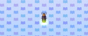The Firefly, Cyphonocerus ruficollis, is a very common bug that can be found on June nights floating around rivers and holding ponds between 7pm and 4am. They can be sold for 300 Bells.